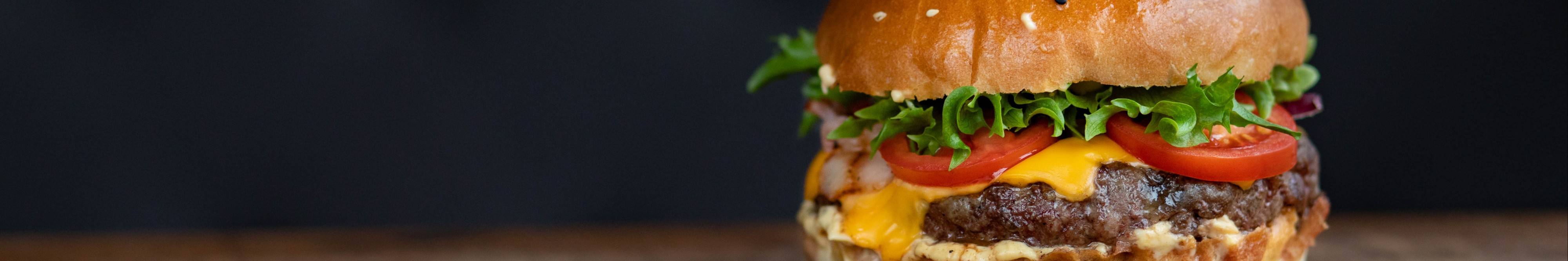 Бургер із двома котлетами, беконом, сиром, салатом та соусом 1320 ккал Б: 47 г · Ж: 95 г · В: 72 г